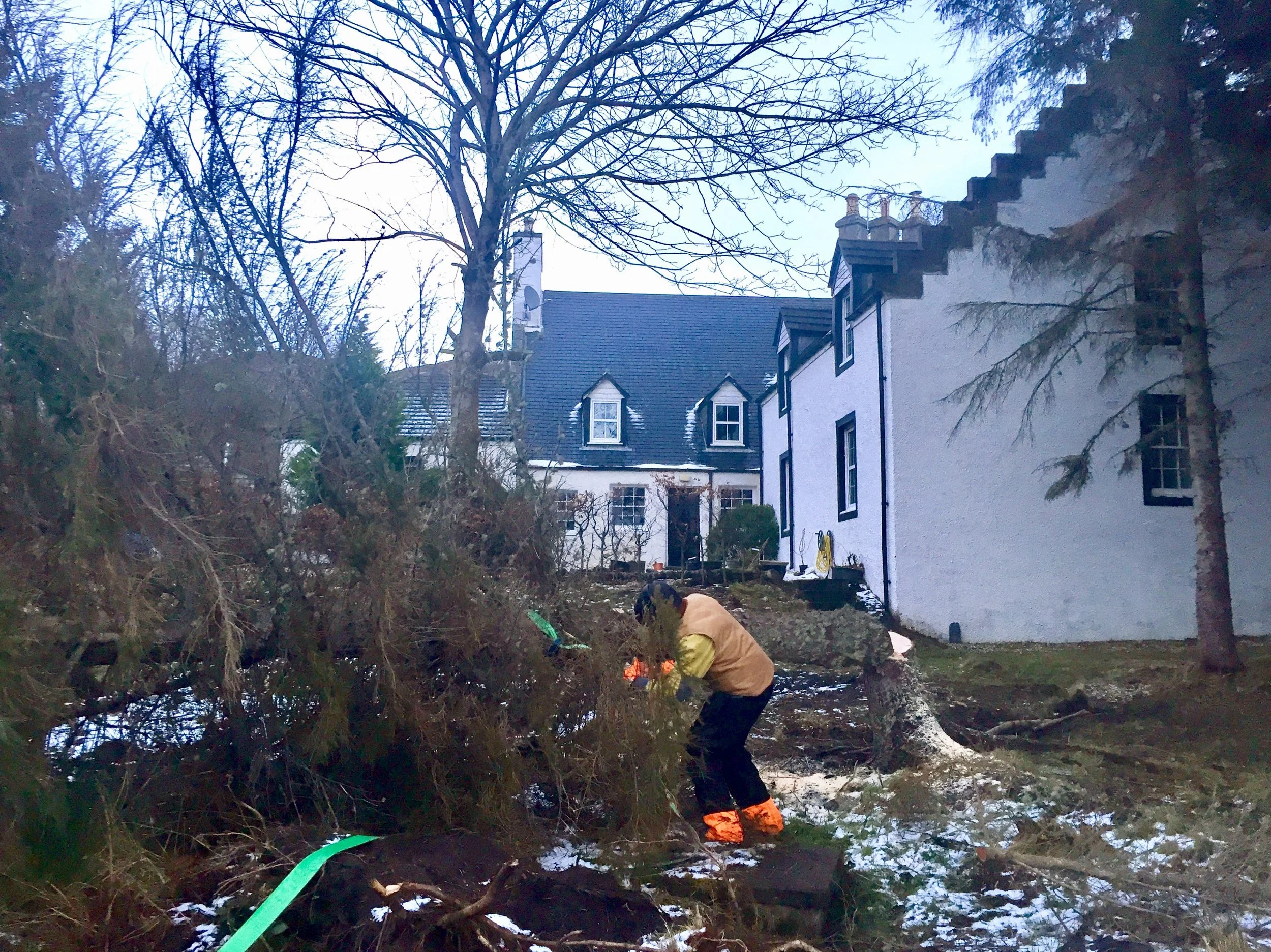 Tree management continues as part of responsible stewardship. This winter, 2025-2026 we have removed five dying spruces which wereover fifty years old—legacy plantings now presenting risk to the hotel building. These need skilled foresters to bring down the 50 ft high trees representing over 50 years of growth.